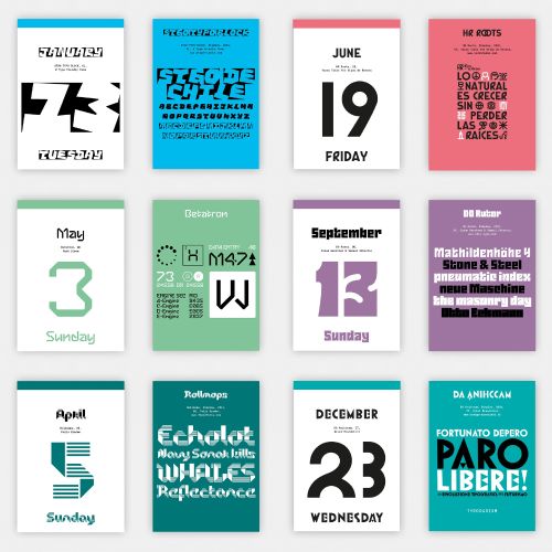 世界中のフォントを使用し、365日が日替わりフォントでデザインされています。