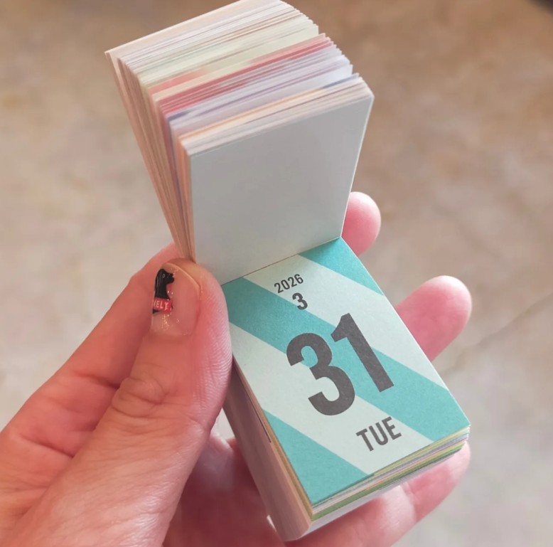 4.5×3cm、手のひらサイズの小さな日めくりカレンダーです。