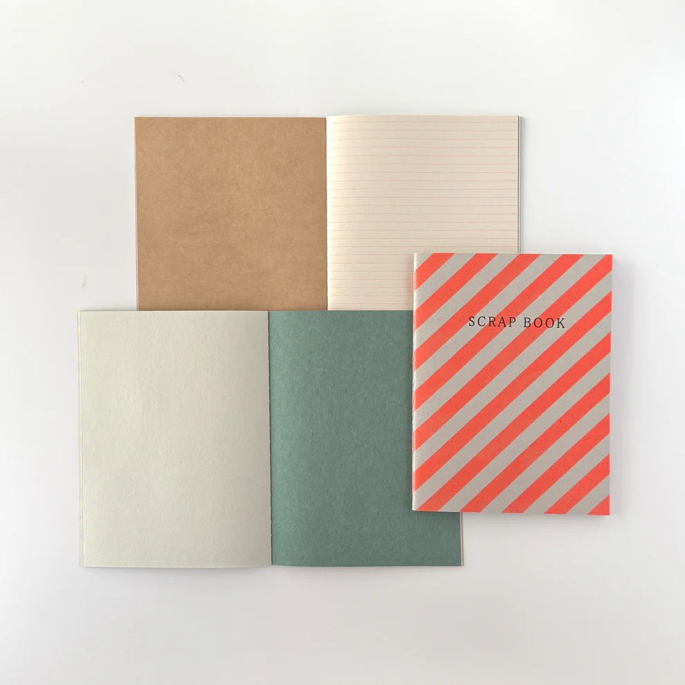 素材の異なる様々な紙を綴じ込んだA5サイズより少し小さなスクラップブック。